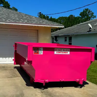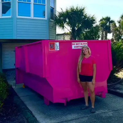 Waste Queens Dumpster Rentals is proudly woman-owned and operated by Lorelai Maynard, with solid support from her right-hand man (and fellow Waste Queen), Dawson Garus. Starring our signature hot pink dumpster, we are breaking barriers and cleaning up — one load at a time! For those in need of a Volusia County dumpster rental, we’ve got you covered!